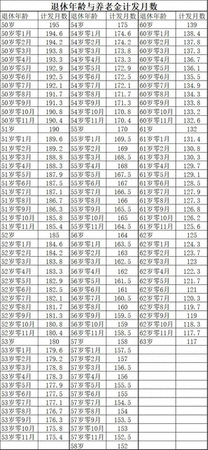 國家統一規定的計發月數表,建議你直接存圖: